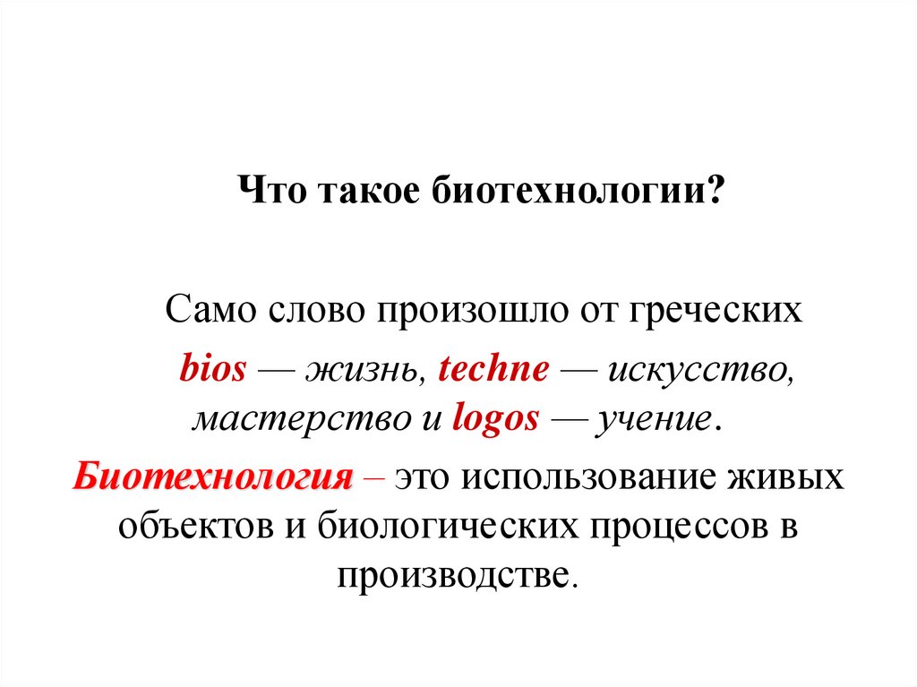 Что такое биотехнологии?Само слово произошло от греческих