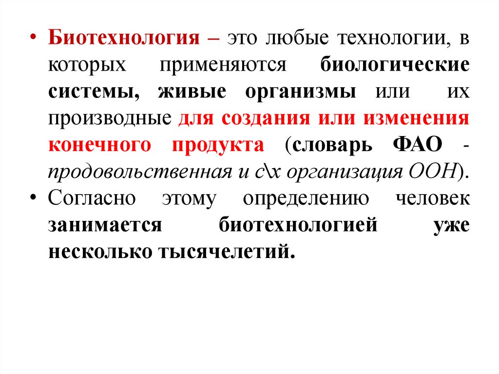 • Биотехнология – это любые технологии, вкоторых применяются биологические