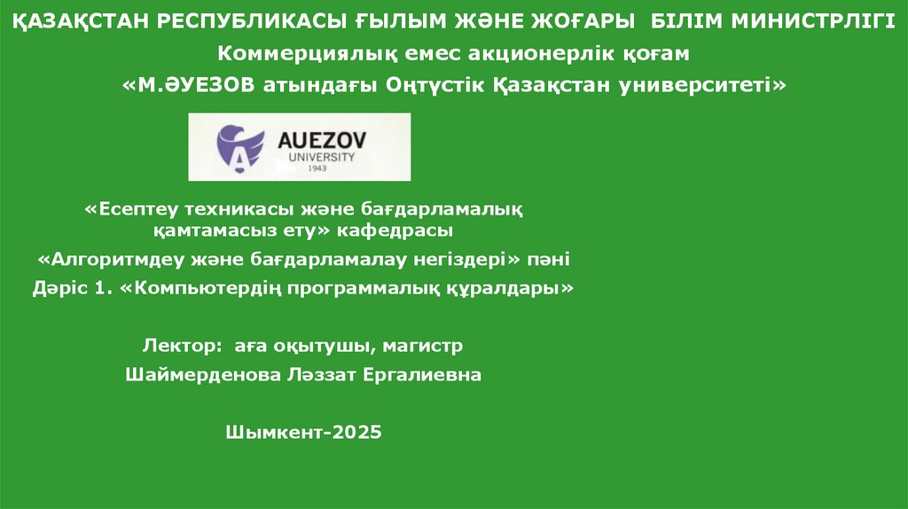 Дәріс 1. «Компьютердің программалық құралдары»