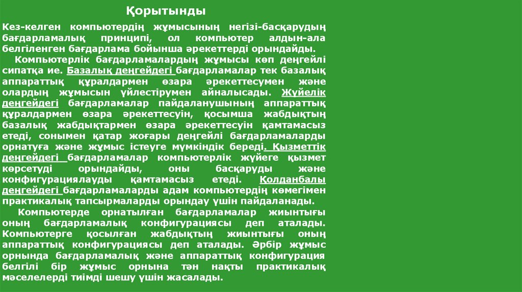 ҚорытындыКез-келген компьютердің жұмысының негізі-басқарудың