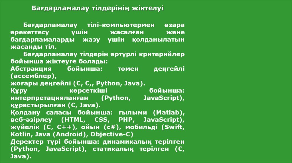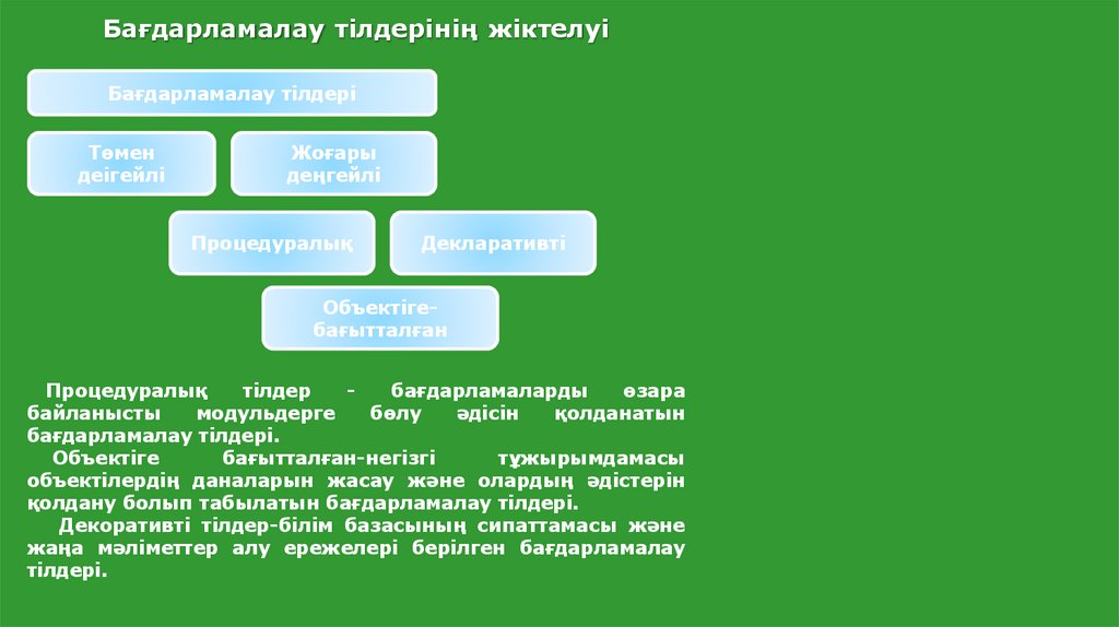 Бағдарламалау тілдерінің жіктелуі.