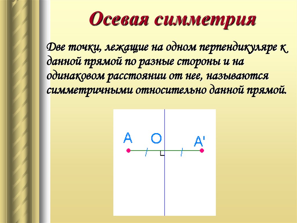 Осевая симметрияДве точки, лежащие на одном перпендикуляре к
