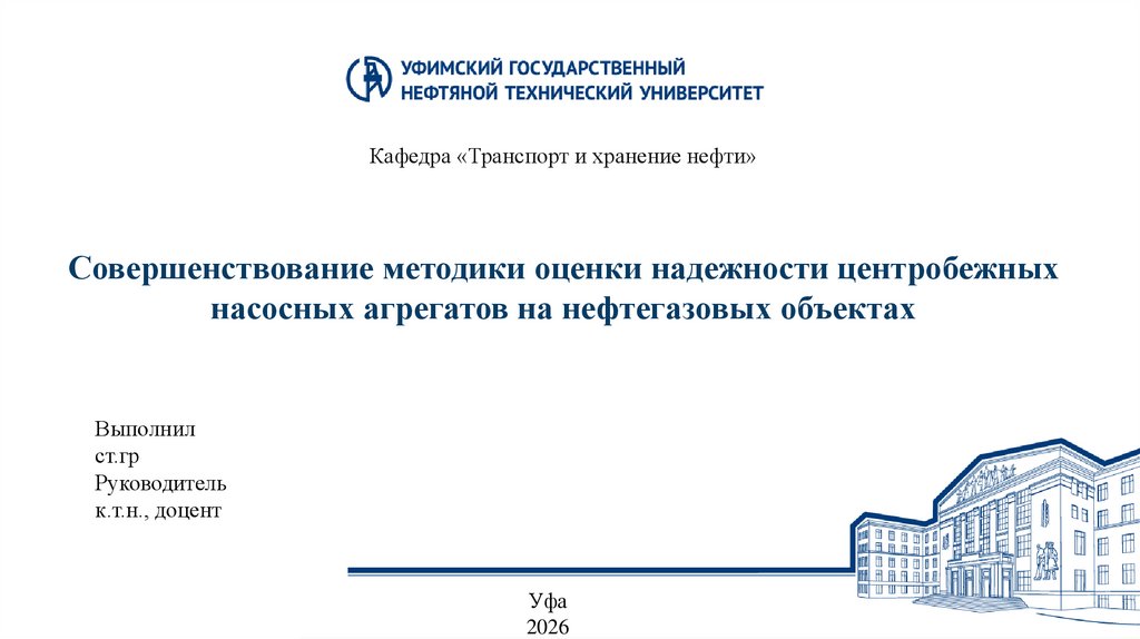 Кафедра «Транспорт и хранение нефти»Совершенствование методики оценки надежности центробежных