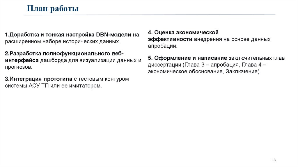 План работы1.Доработка и тонкая настройка DBN-модели на