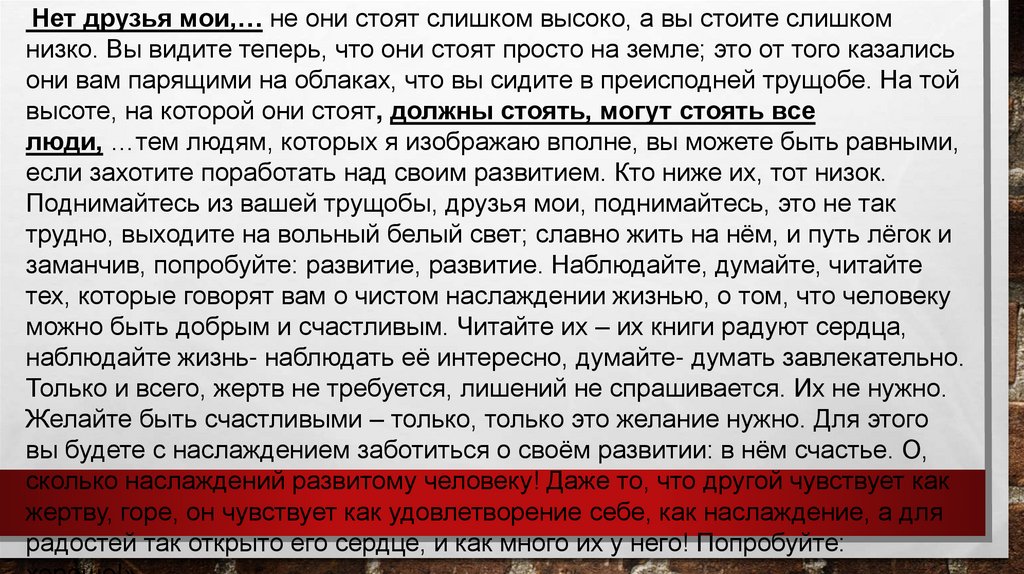 вы будете с наслаждением заботиться о своём развитии: в нём счастье. О,