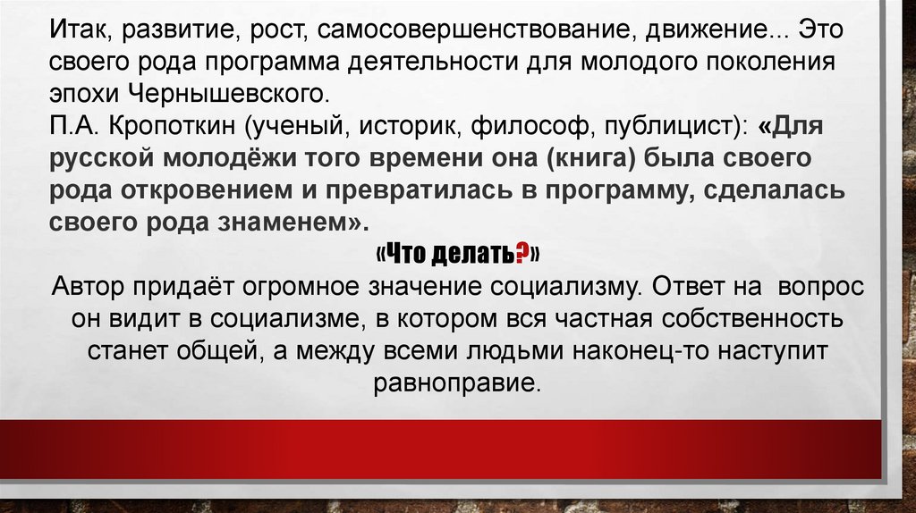 Автор придаёт огромное значение социализму. Ответ на вопрос