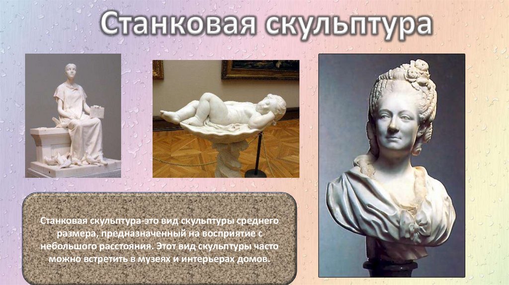 Станковая скульптура-это вид скульптуры среднегоразмера, предназначенный на восприятие с