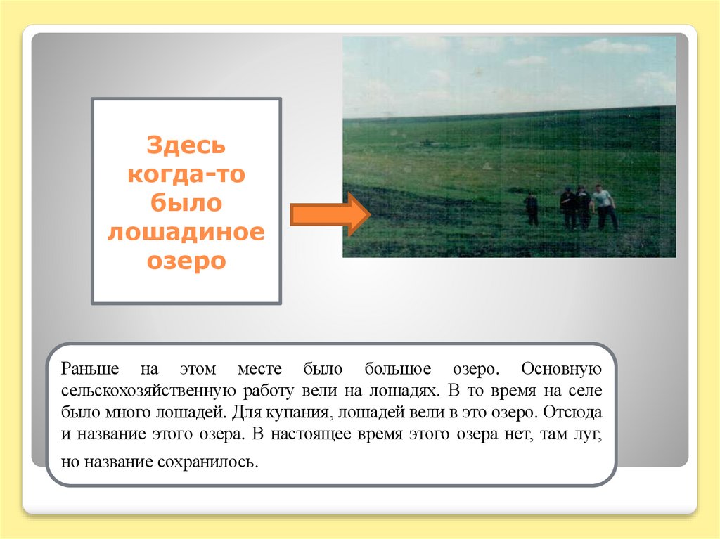 и название этого озера. В настоящее время этого озера нет, там луг,