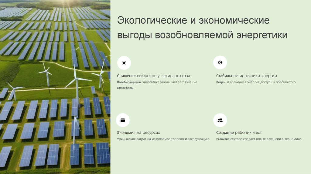 Экологические и экономическиевыгоды возобновляемой энергетики