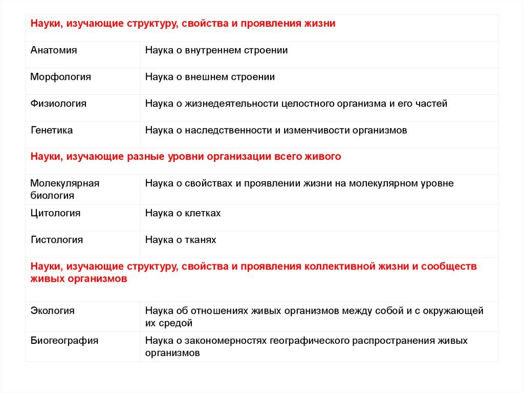 Науки, изучающие структуру, свойства и проявления жизниАнатомия