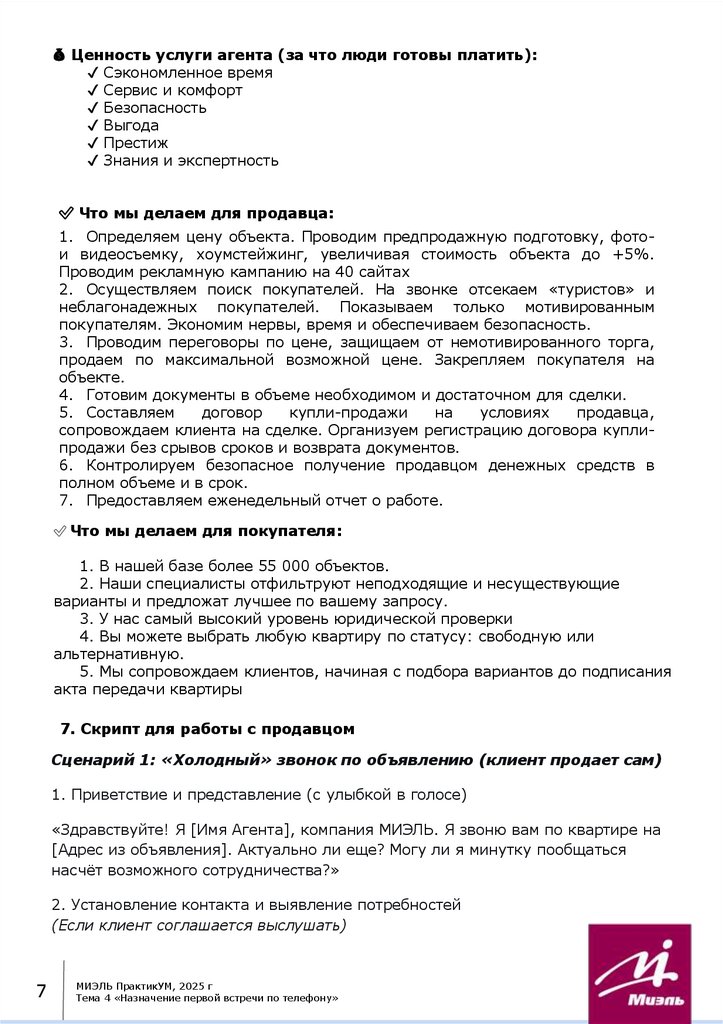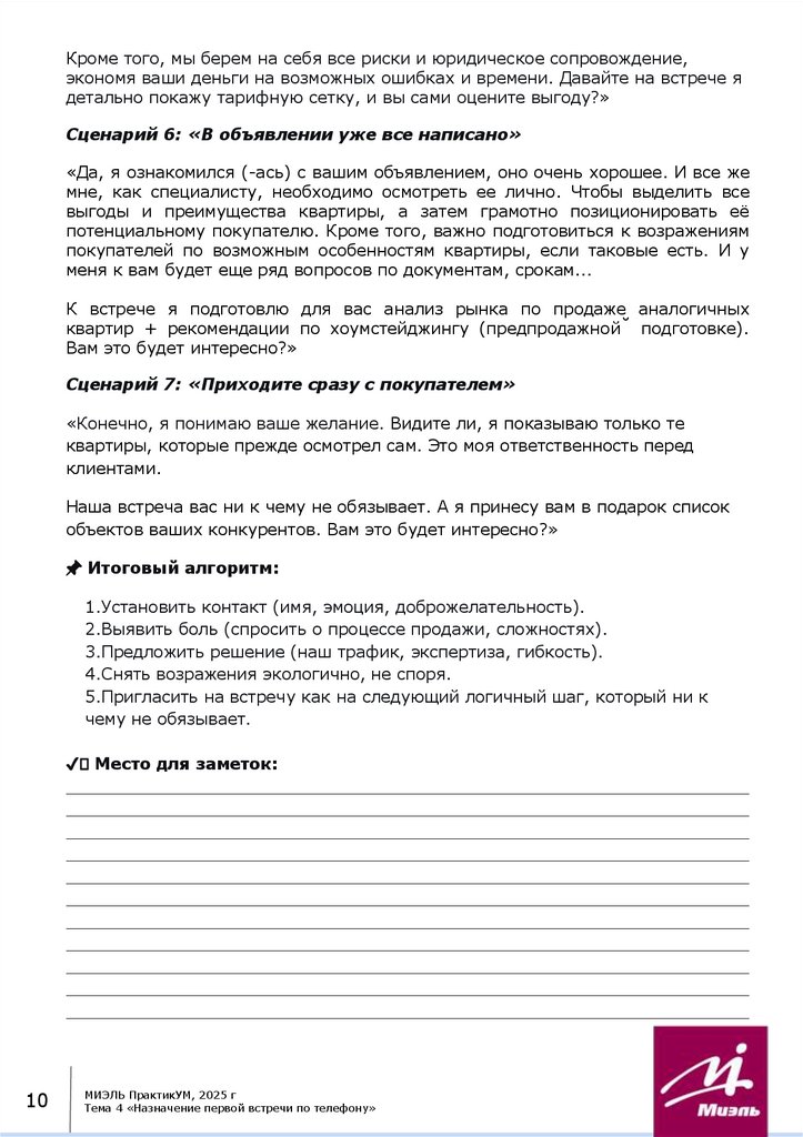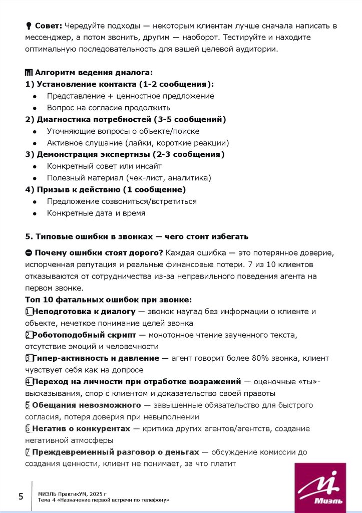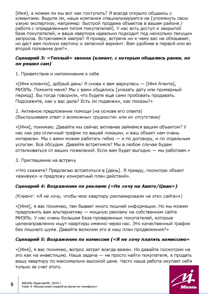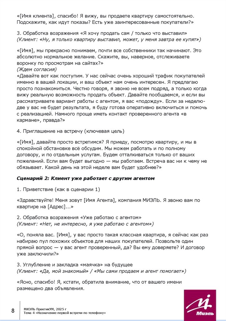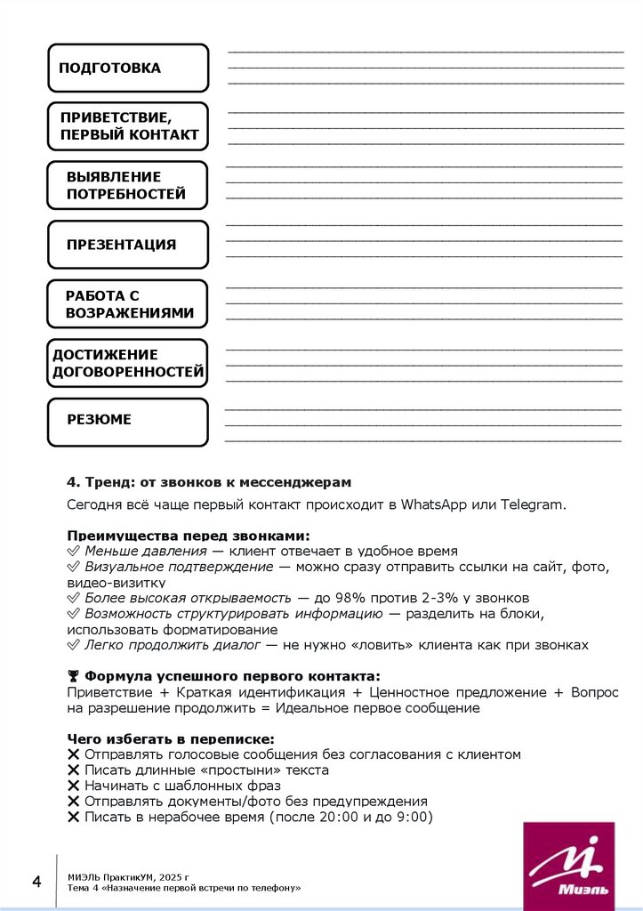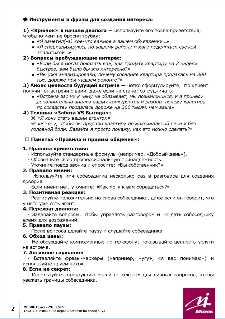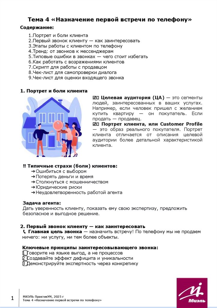 Тема 4 «Назначение первой встречи по телефону»Содержание: