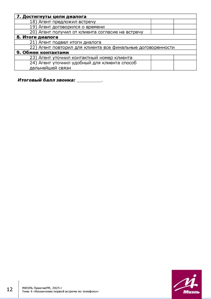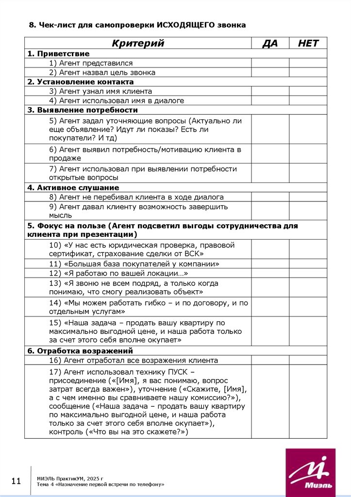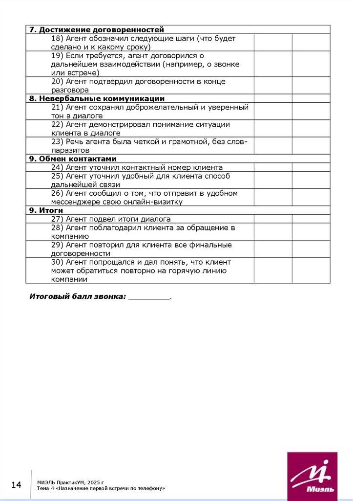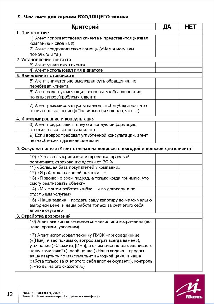 9.Чек-лист для оценки входящего звонка