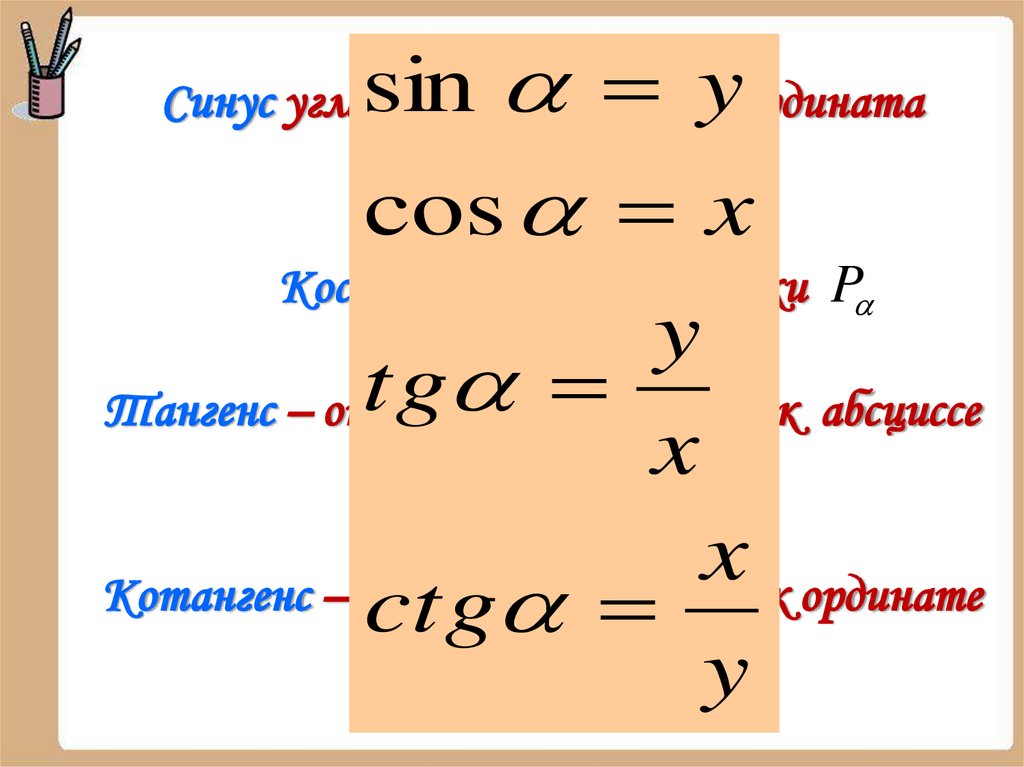 Котангенс – отношение