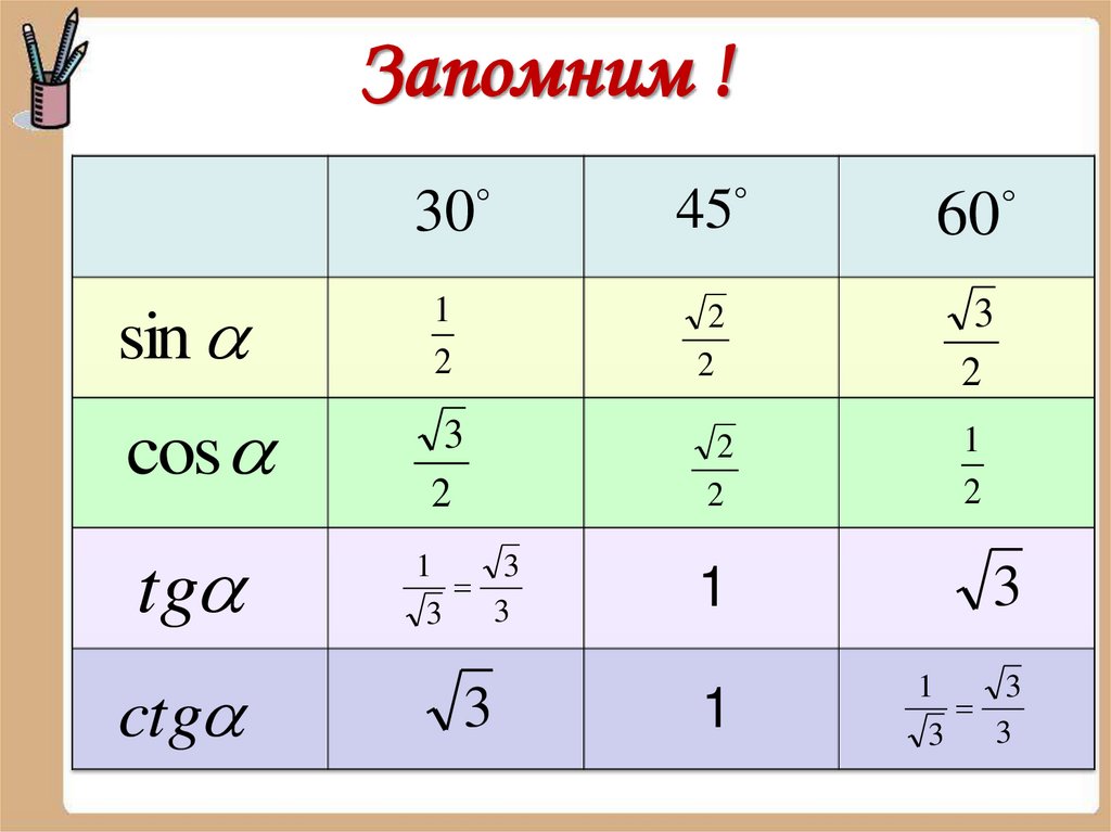тангенса и котангенса, таблицу значений