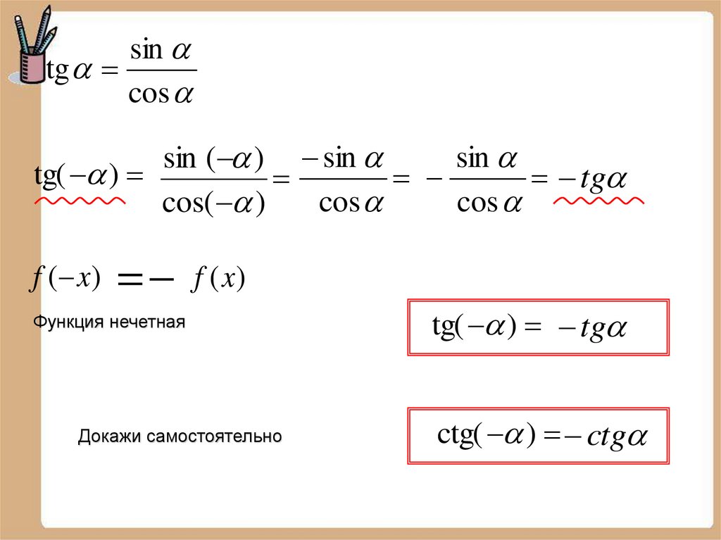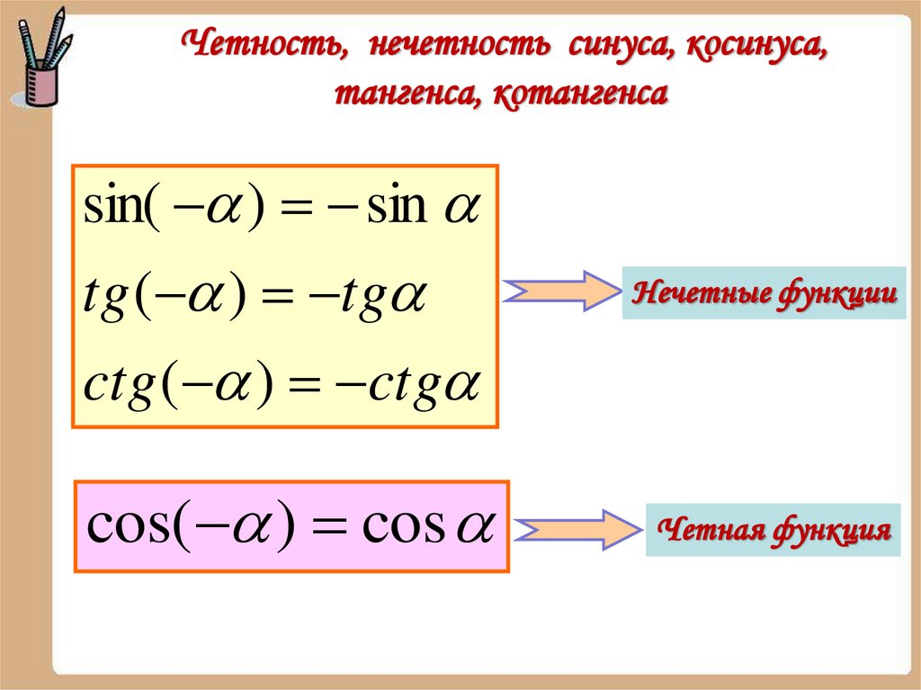 Четность, нечетность синуса, косинуса,тангенса, котангенса