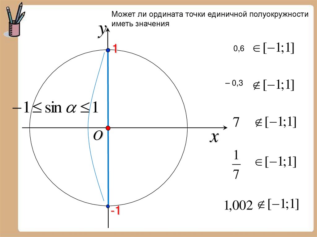 yМожет ли ордината точки единичной полуокружности