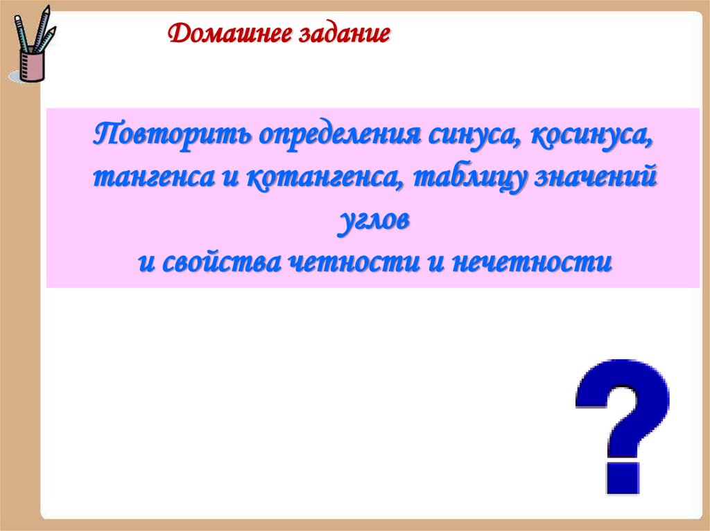 Домашнее заданиеПовторить определения синуса, косинуса,