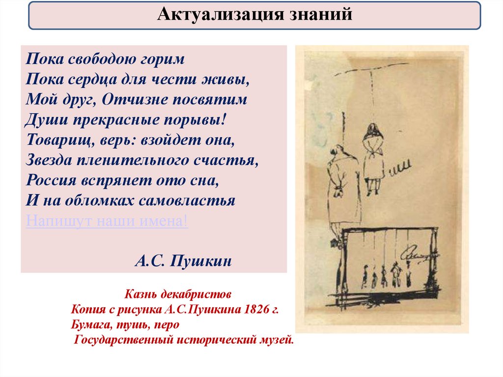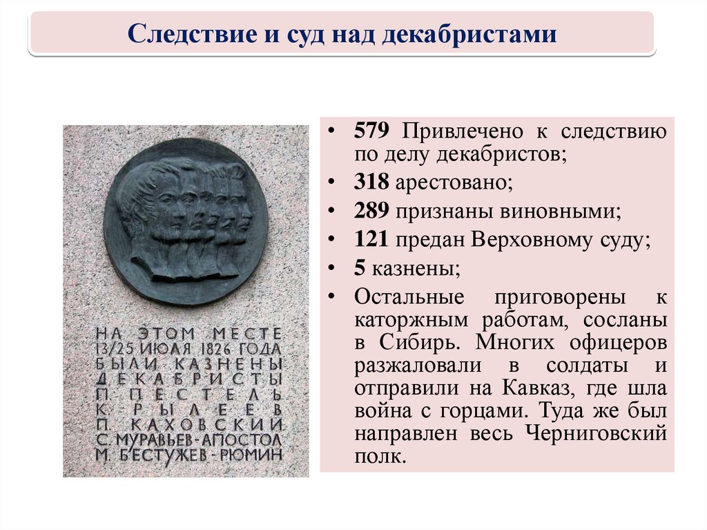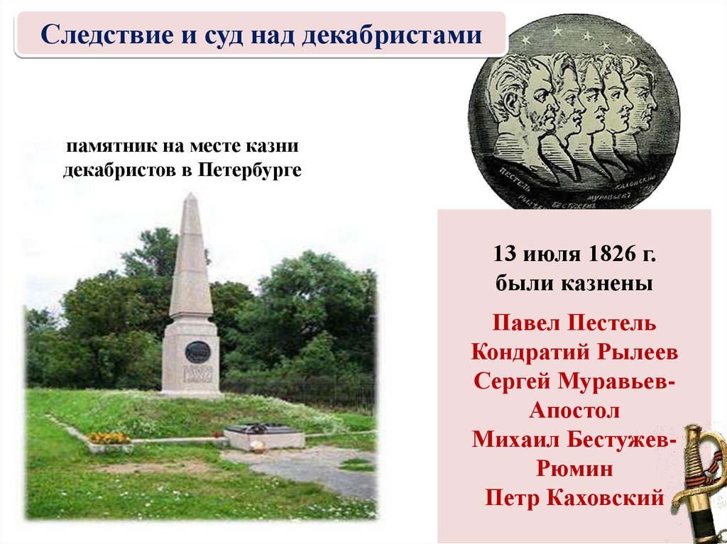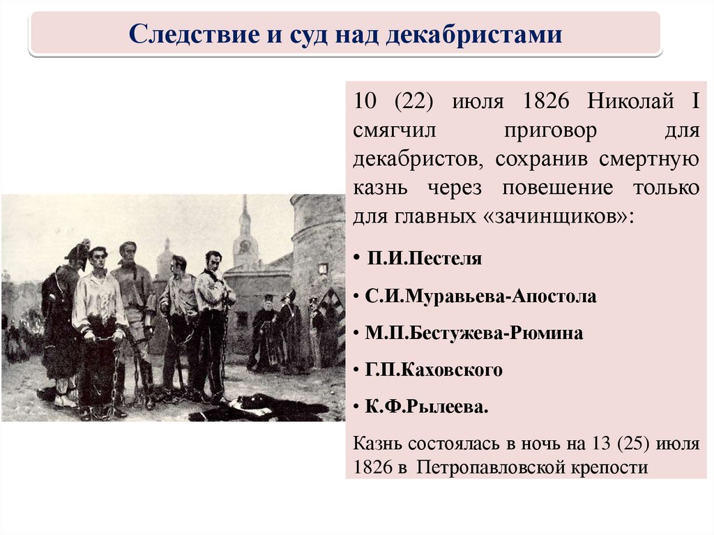 казнённых декабристов: Пестеля, Муравьева- Апостола,