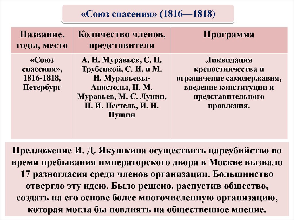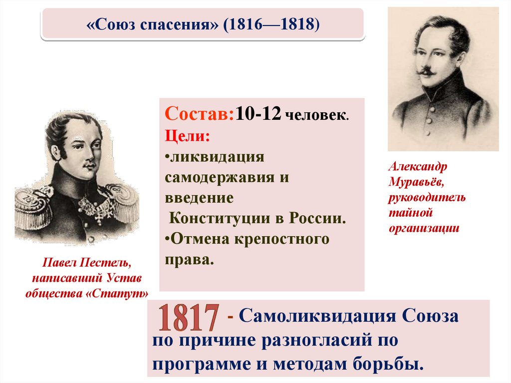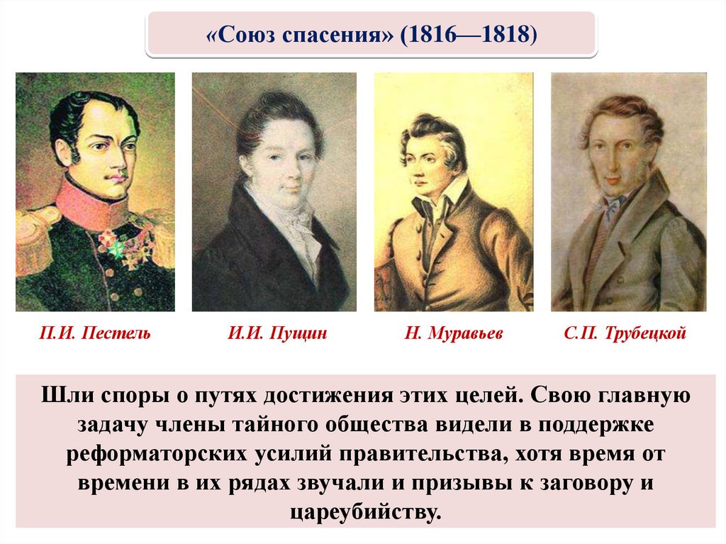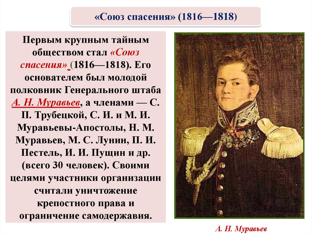 «Союз спасения» (1816—1818)Первым крупным тайным