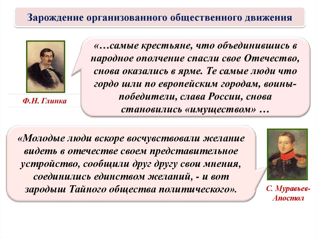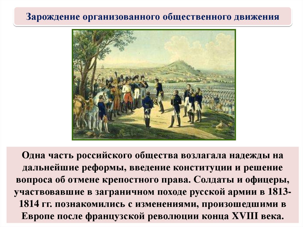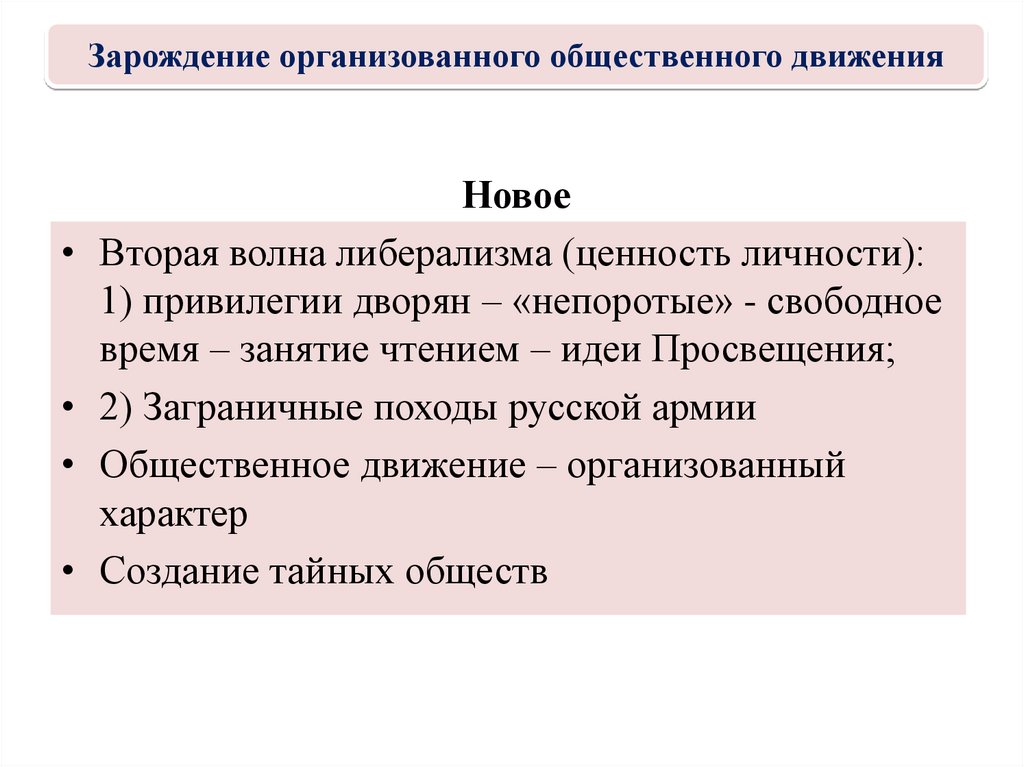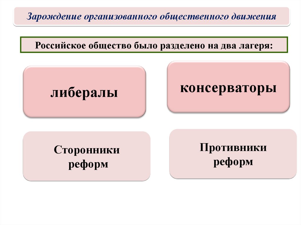 Зарождение организованного общественного движенияРоссийское общество было разделено на два лагеря: