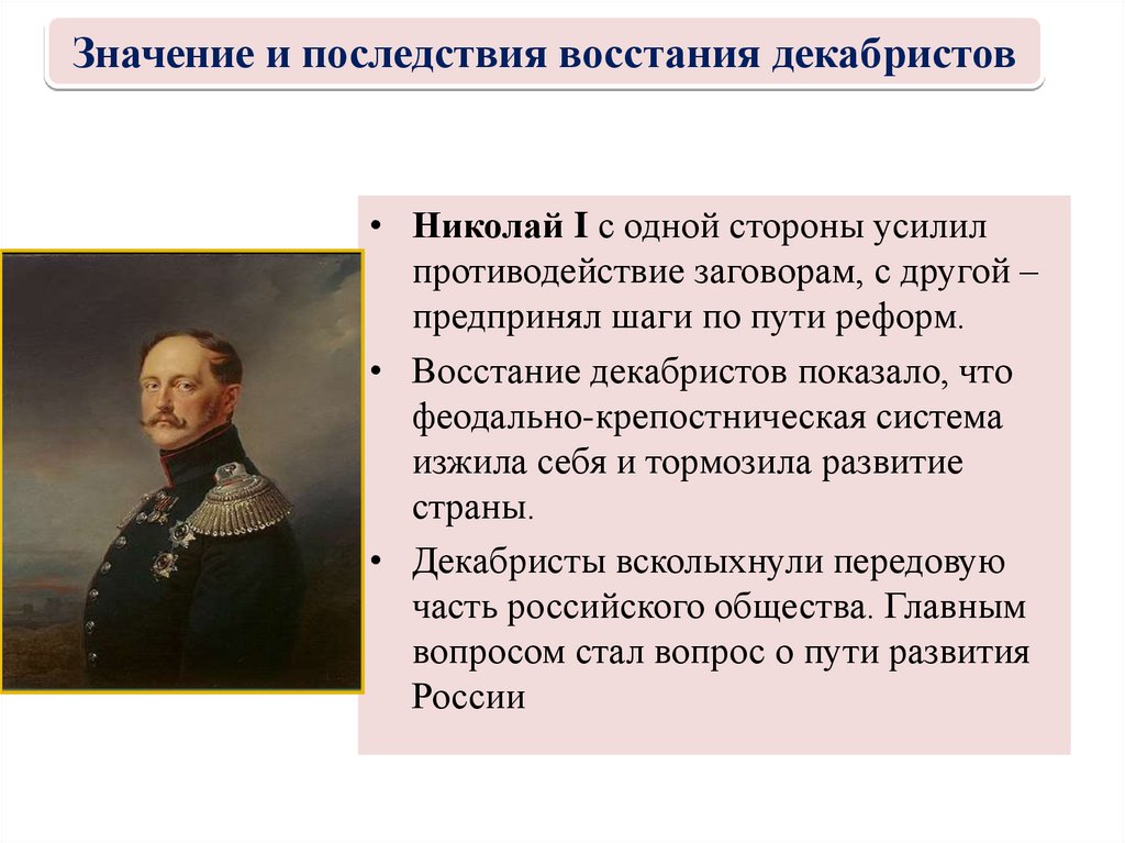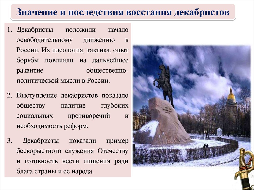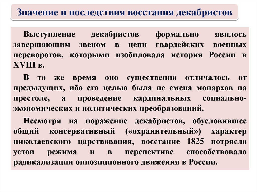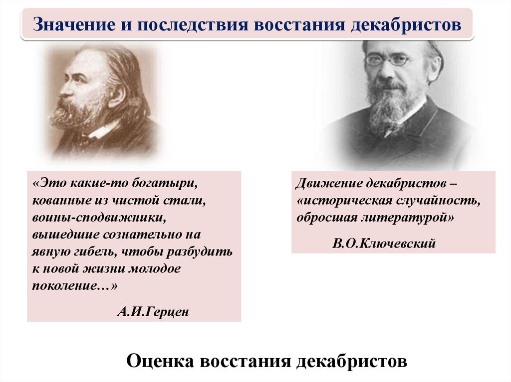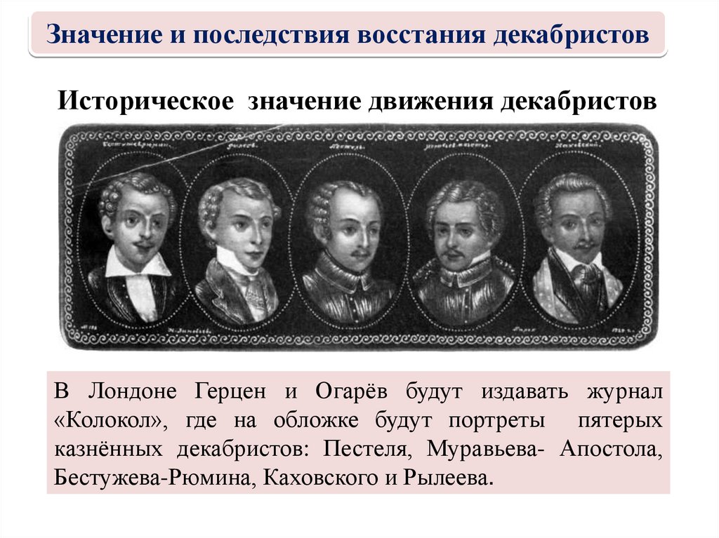 Значение и последствия восстания декабристовИсторическое значение движения декабристов
