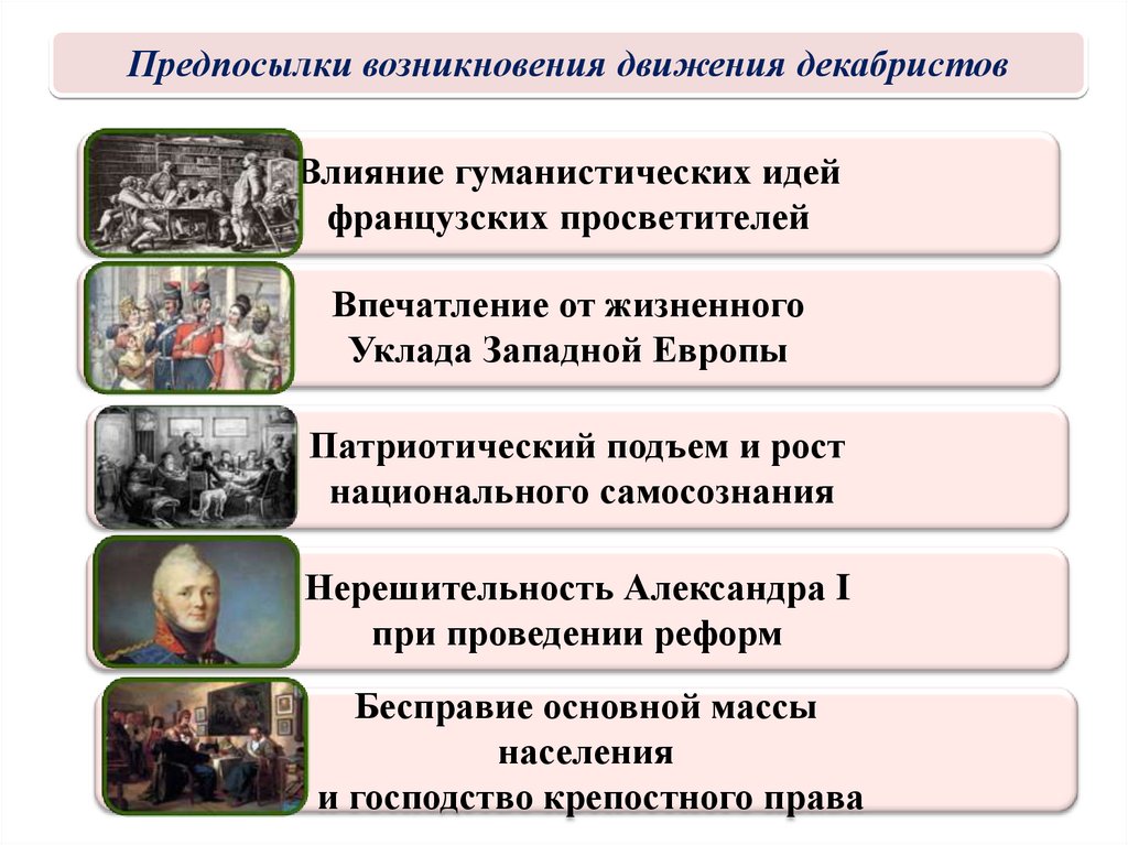 Предпосылки возникновения движения декабристовВлияние гуманистических идей