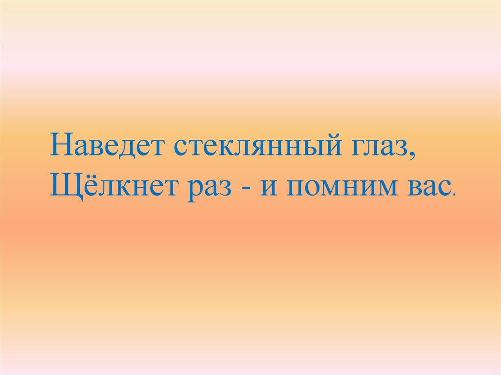 Наведет стеклянный глаз,Щёлкнет раз - и помним вас