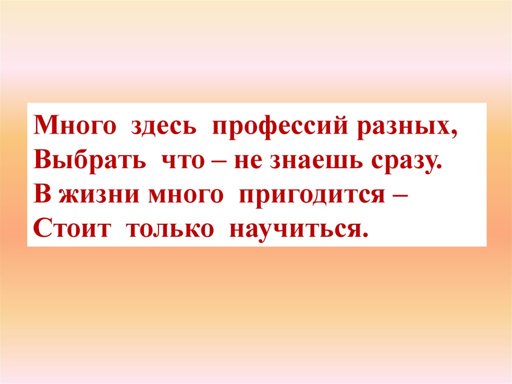 Много здесь профессий разных,Выбрать что – не знаешь сразу.
