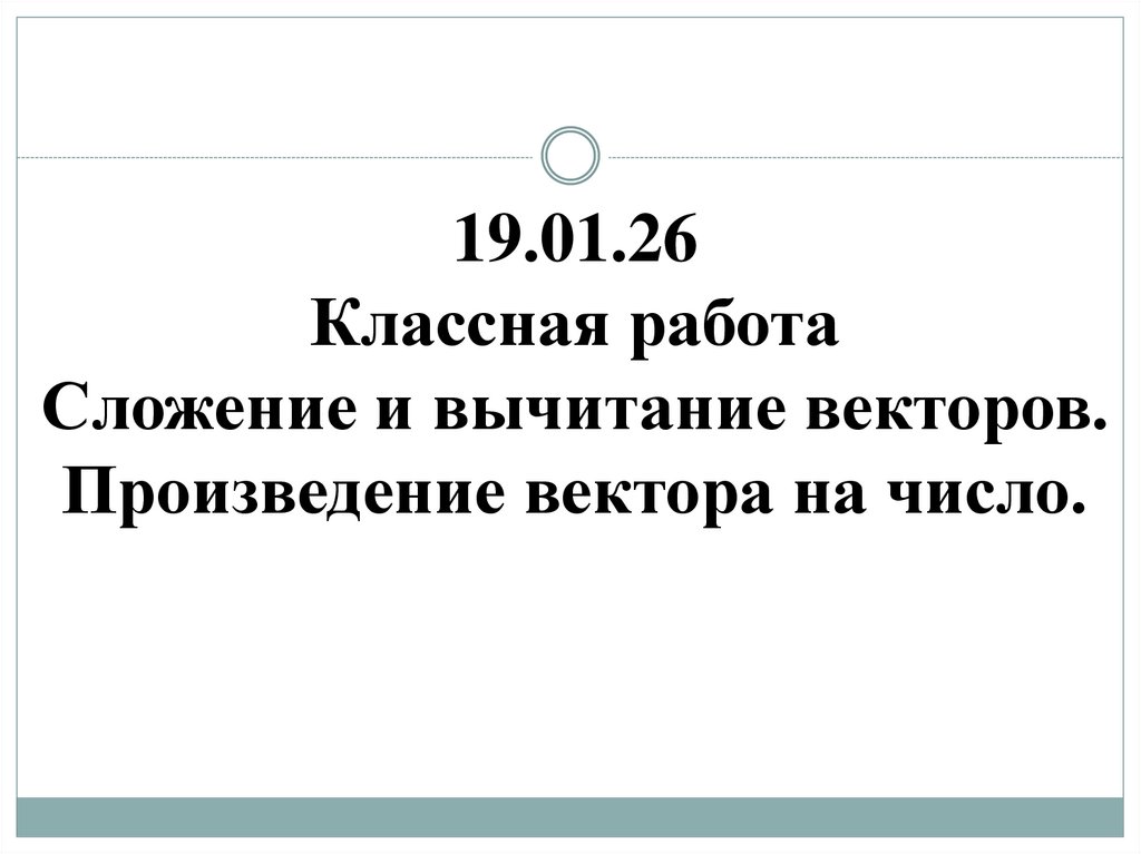 19.01.26 Классная работа Сложение и вычитание векторов. Произведение вектора на число.