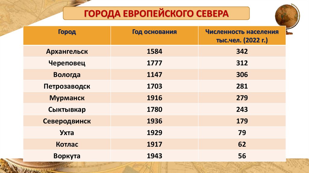 ГОРОДА ЕВРОПЕЙСКОГО СЕВЕРАГород