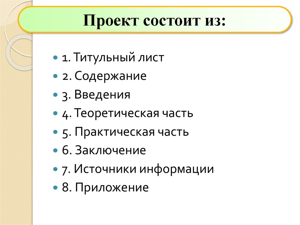 Проект состоит из:1. Титульный лист