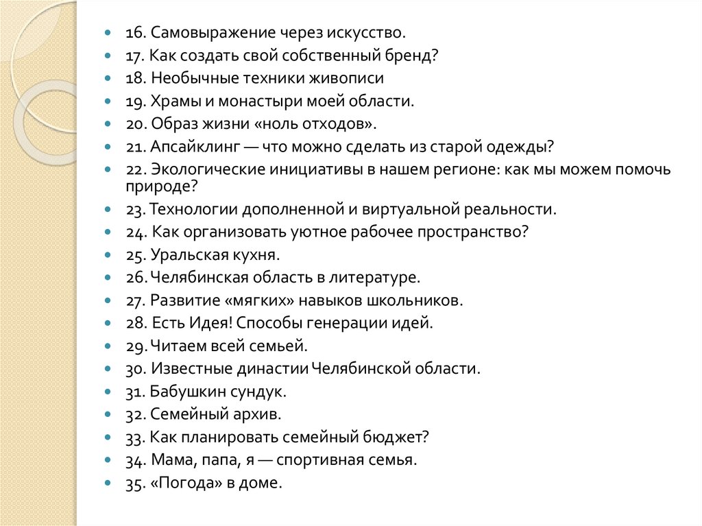 16. Самовыражение через искусство.17. Как создать свой собственный бренд?