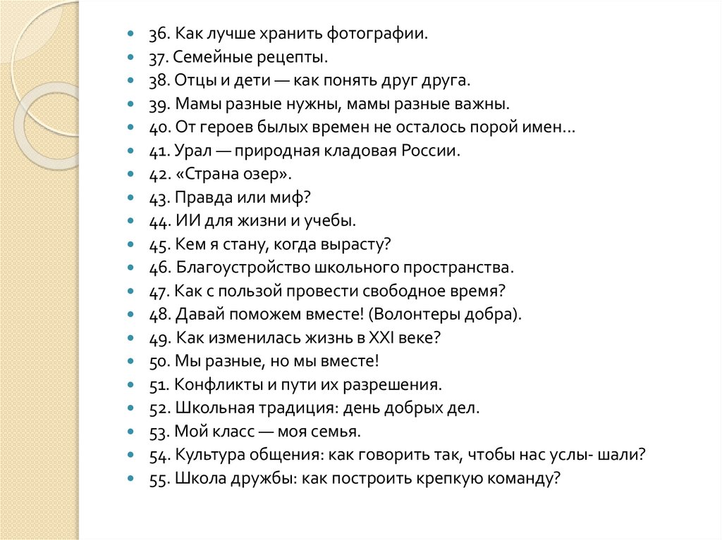 36. Как лучше хранить фотографии.37. Семейные рецепты.