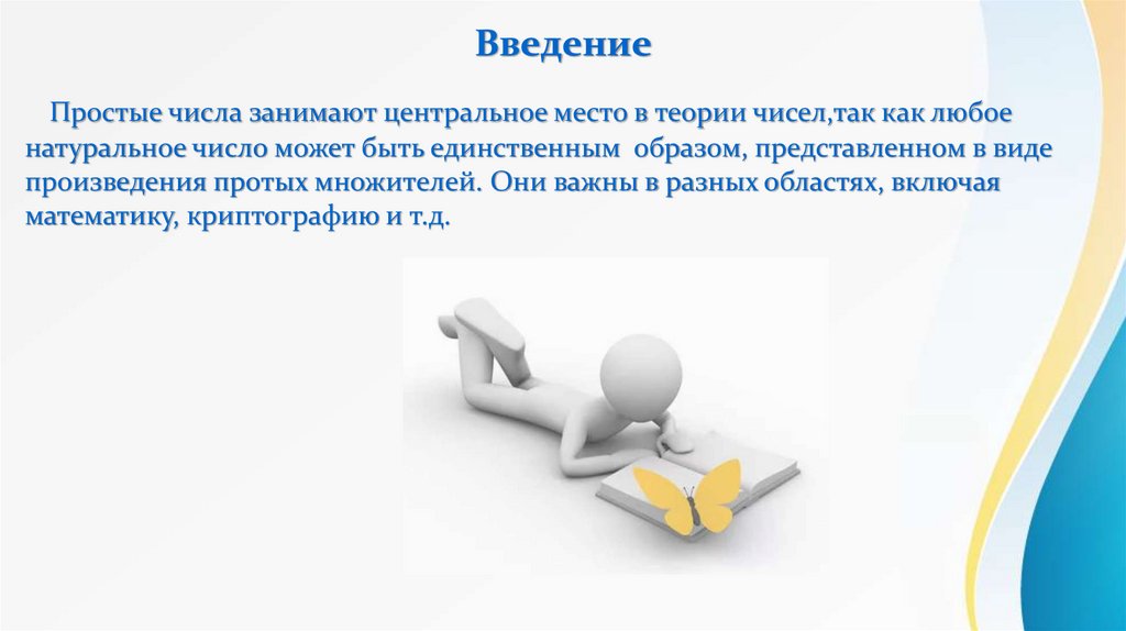 ВведениеПростые числа занимают центральное место в теории чисел,так как любое