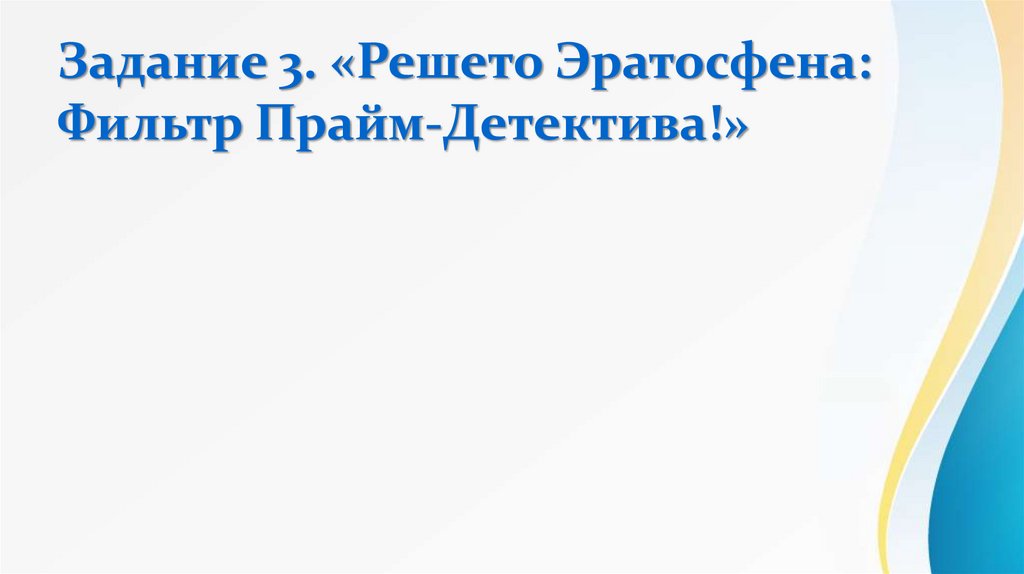 Задание 3. «Решето Эратосфена:Фильтр Прайм-Детектива!»