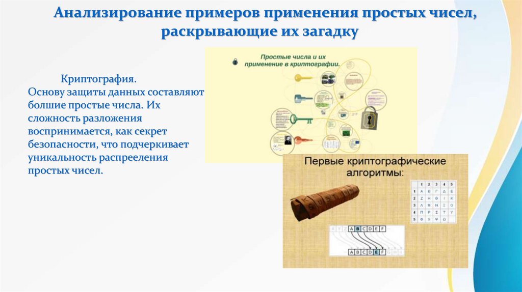 Анализирование примеров применения простых чисел,раскрывающие их загадку