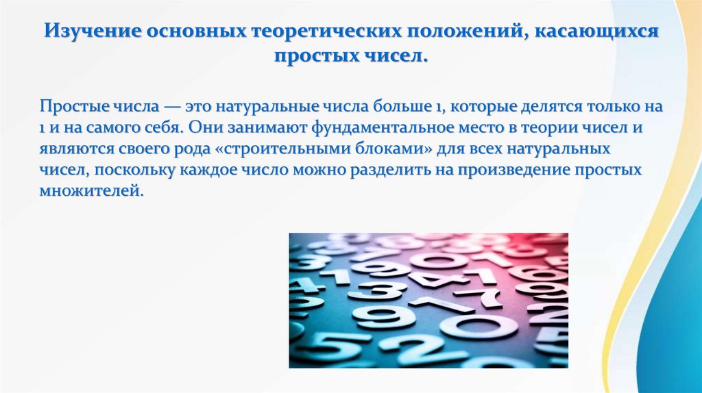 Изучение основных теоретических положений, касающихсяпростых чисел.