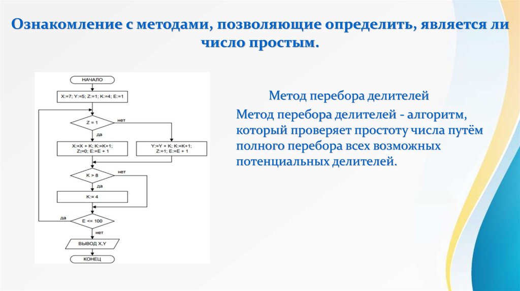 Ознакомление с методами, позволяющие определить, является личисло простым.