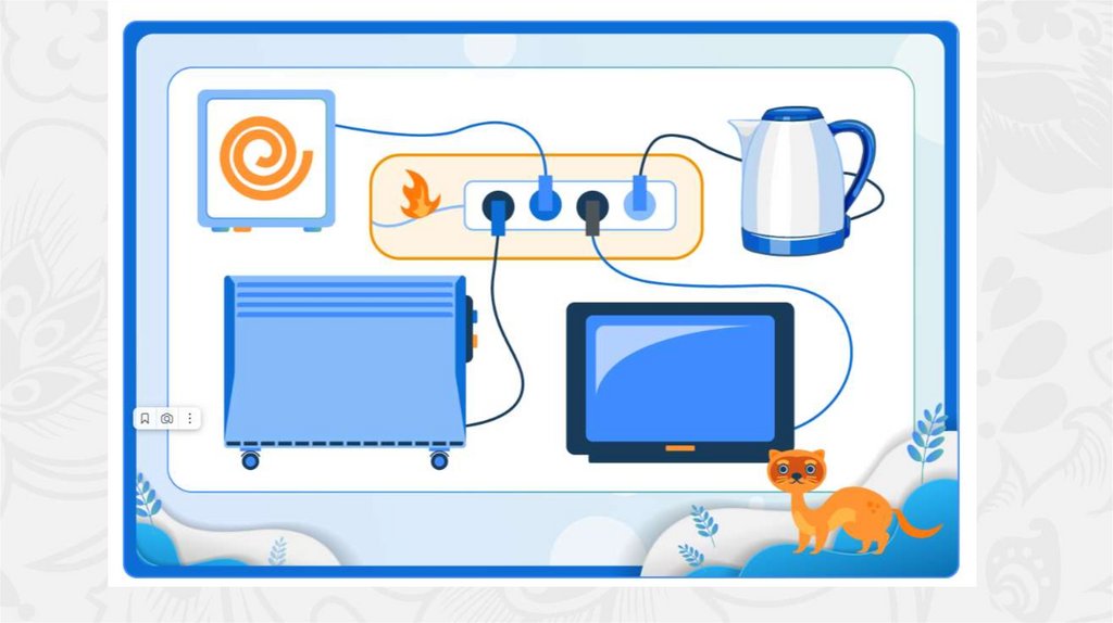 небольшое пламя, вырывающейся из розетки, ответь на вопросы