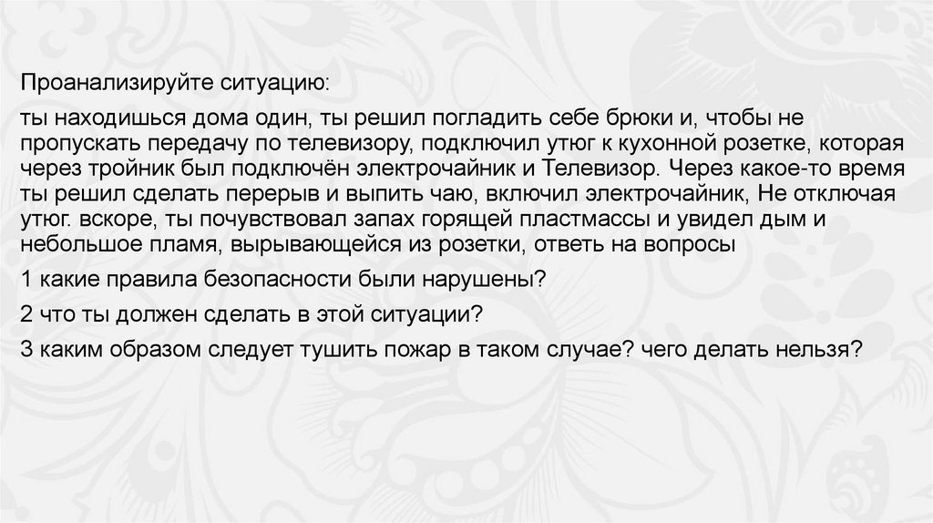 Проанализируйте ситуацию:ты находишься дома один, ты решил погладить себе брюки и, чтобы не