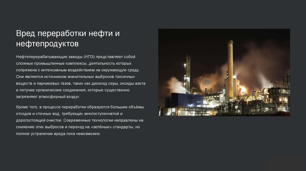 Нефтеперерабатывающие заводы (НПЗ) представляют собой