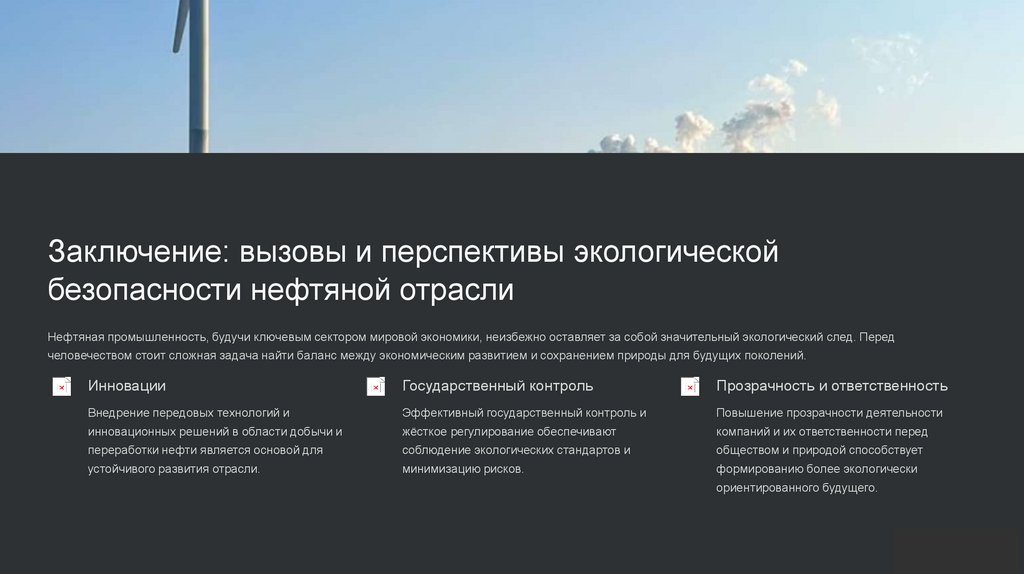 Заключение: вызовы и перспективы экологическойбезопасности нефтяной отрасли