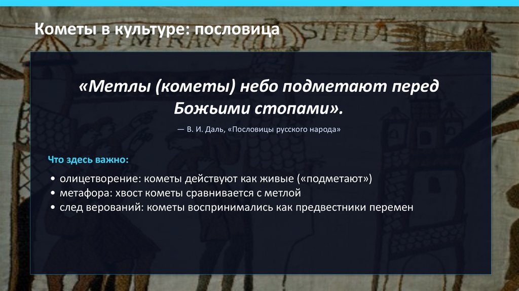 Кометы в культуре: пословица«Метлы (кометы) небо подметают перед
