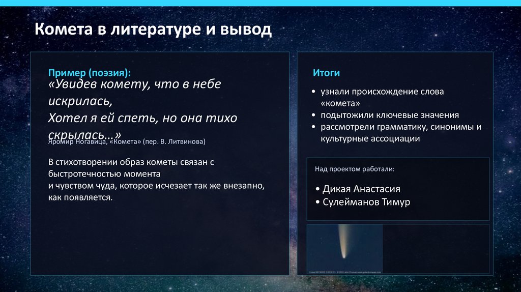 Комета в литературе и выводПример (поэзия):