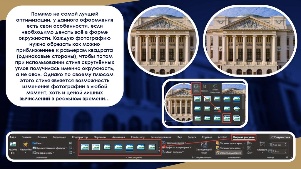 при использовании стиля скруглённых