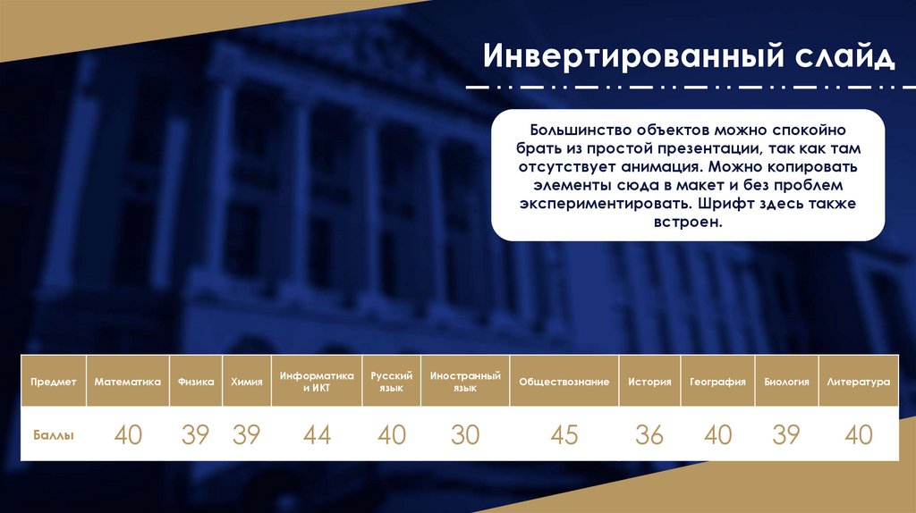 Инвертированный слайдБольшинство объектов можно спокойно