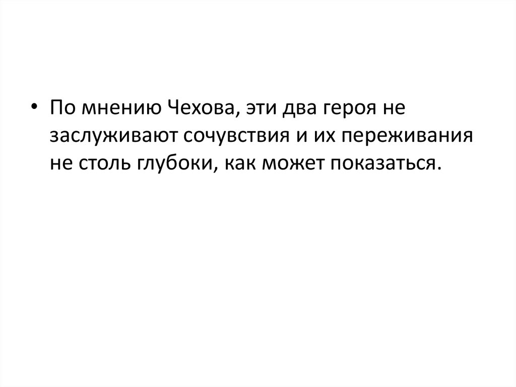 • По мнению Чехова, эти два героя незаслуживают сочувствия и их переживания