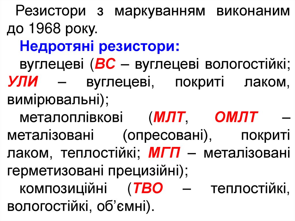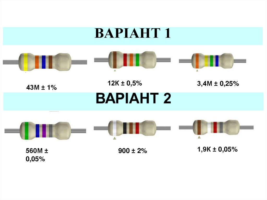1. Розшифрування параметрів резисторів.