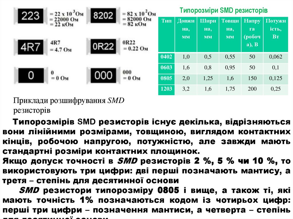 розшифрування резисторів та