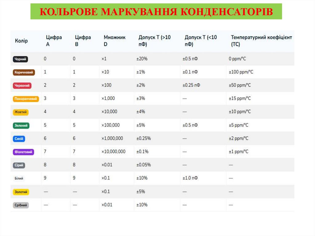 КОЛЬРОВЕ МАРКУВАННЯ КОНДЕНСАТОРІВ43.